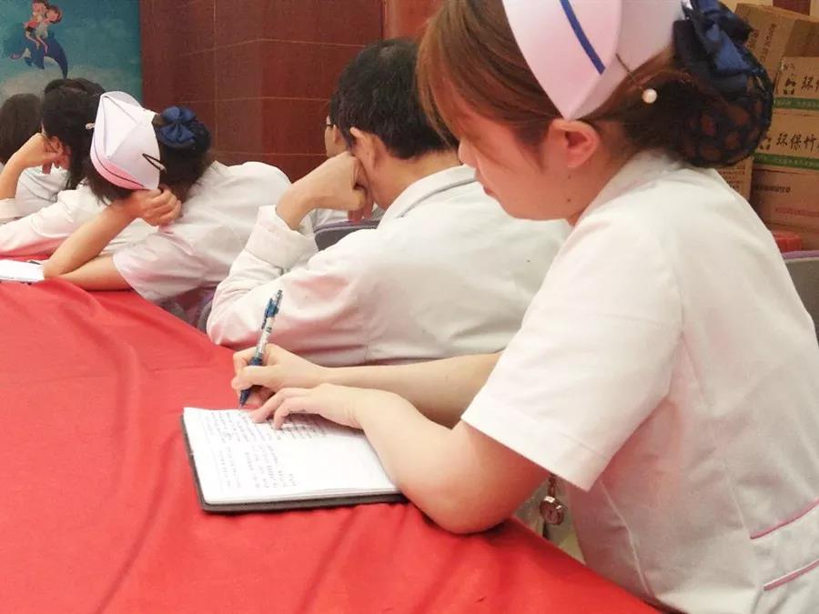(医务人员正在认真做笔记)