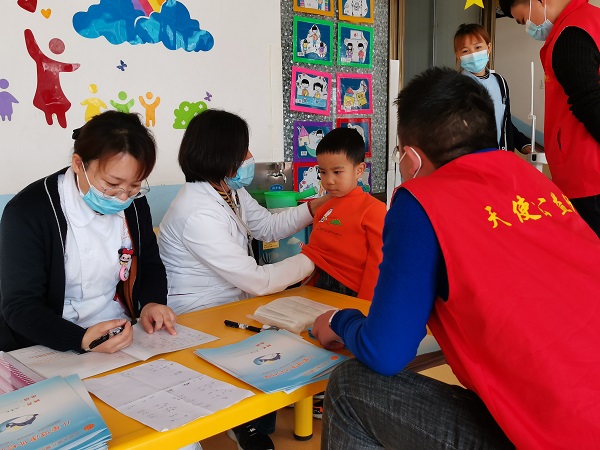 儿童在3—6岁时,正是生长发育的关键期,幼儿的健康成长,是幼儿园和家庭共同关注的事情,为让家长及时了解幼儿的生长发育情况,2020年10月15日小小支教-天使公益团队的专家和医护人员再出发,来到河北保定定兴县阳光启睿幼儿园开展了爱心义诊活动,为全园的孩子们进行身心检查,并进行相关的健康指导、发放支教书包,受到了孩子们的热烈欢迎!