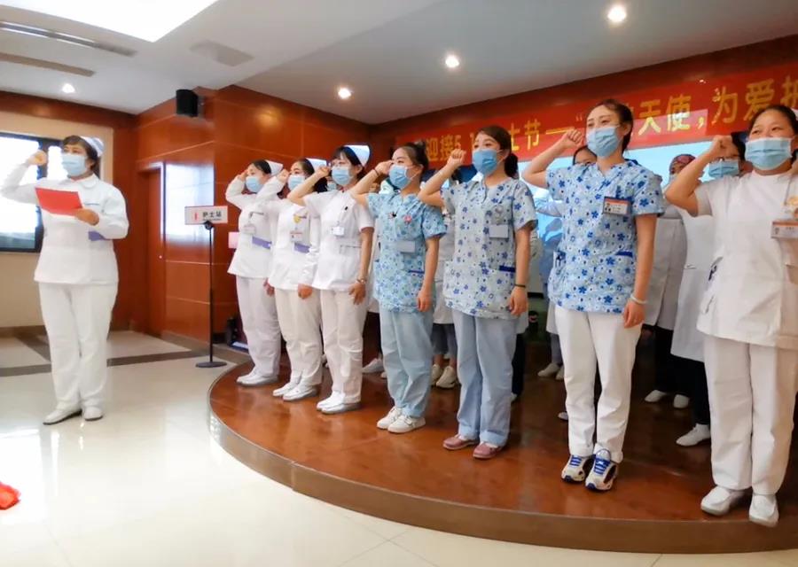 活动最后,由护理部张诺主任带领全院护士进行南丁格尔誓言宣誓;并对一直辛勤地在工作岗位上的医护人员,送上了礼品和鲜花。