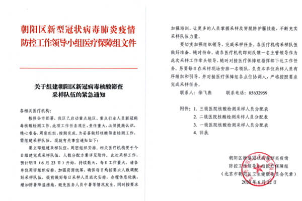自新冠病毒肺炎疫情发生以来,国家全力以赴阻击疫情。自6月13日发现新发地感染确诊病例以及传染源,目前,北京第二波的疫情让牵动千家万户的心。针对疫情防控,病毒专家吴尊友表示"患者的早期发现、早期隔离,最为关键,这比治疗、比任何都重要"。为了提高检测率、确诊率,打赢这场攻坚战,进一步保障人民的生命安全,在国家卫健委的指示下,北京各区医疗机构积极相应支援各区核酸检测工作。北京天使儿童于2020年6月24日开展核酸检测专业培训以及防护相关培训,并成立防疫支援医疗队(20人),批英雄已经整装待发。