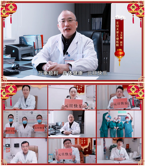 今天是2021年的天,北京天使儿童医院戈光辉院长及专家们向所有关注支持信任我们的患儿家长朋友们,向辛勤奋战在各自岗位上的全体员工,以及理解支持、默默奉献的员工家属,致以崇高的敬意和衷心的感谢,同时送上一份新年的问候!