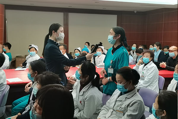 培训会上,徐老师从服务主动性、微笑服务、外表形象、语言表达、精神状态等方面,深入浅出地阐述了医护人员应遵循的职业道德和服务理念,从医院基本礼仪规范到服务细节,层层递进,给大家做了细致的讲解和现场示范。她强调,在保证医疗服务质量的大前提下,我们也要把人文关怀放在首位。