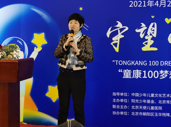 首先姚莉发表了开幕词,她说道:“在我国有164万个自闭症患者, 儿童自闭症占我国精神残疾首位,也已成为严重的全球性公共卫生问题。阳光少年基金在北京天使儿童医院的大力支持下,举办“童康100梦想”公益行动,目的是倡导全社会以平等、尊重、关爱的原则去关注和接纳自闭症儿童;倡导用科学的理念与方法去引导自闭症儿童;倡导建设更加包容、和谐的社会环境,重视环境改变与观念变革对自闭症儿童融入主流社会生活的作用”。