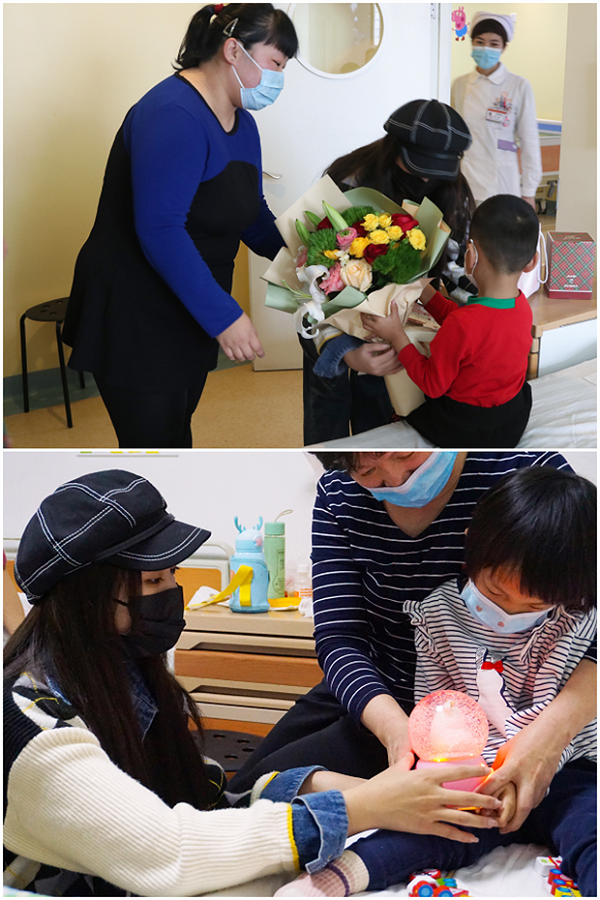在北京天使儿童医院有两名自闭症患儿,因家庭条件极其贫困受到了该院的关注,院长戈光辉、小童星高凤遥带队前往病房,为患儿送去了鲜花和礼物,并进行慰问关怀。