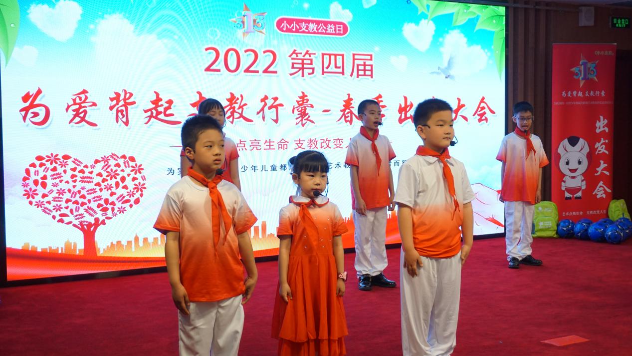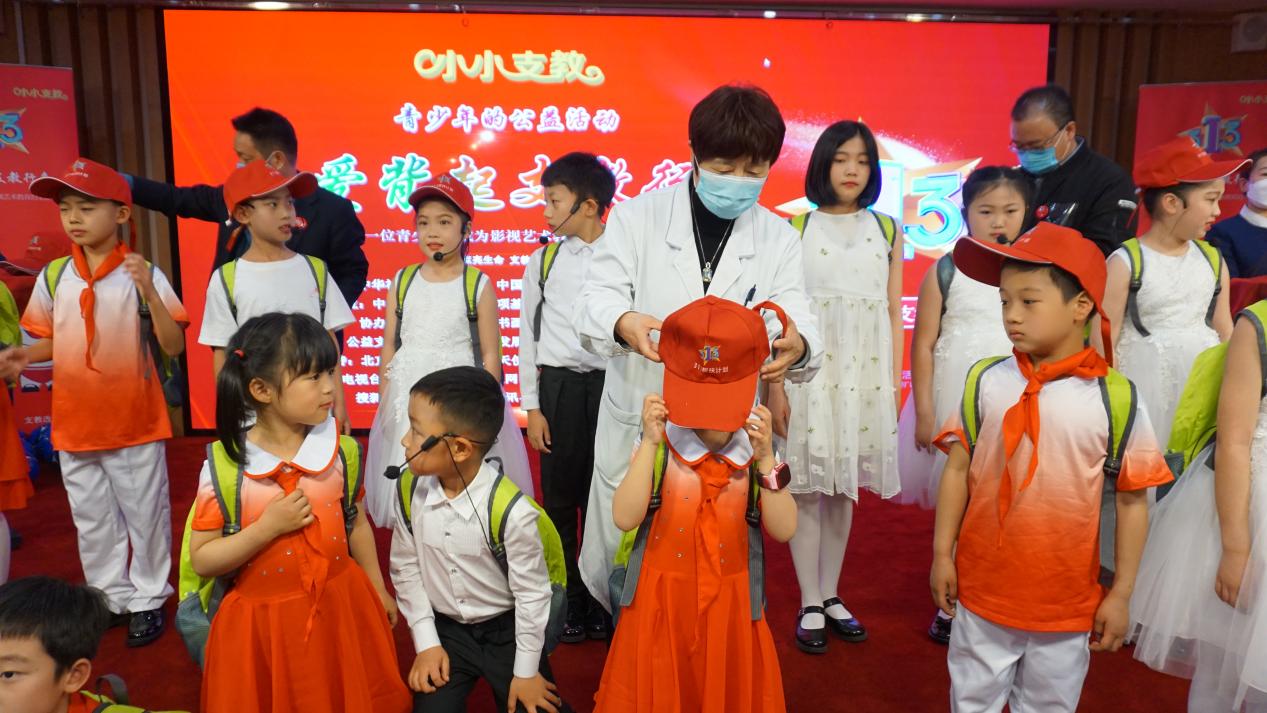 活动的最后,大家共同见证小支教们一起宣誓,并为小小支教代表发放支教行囊、佩戴公益小红帽、佩戴公益胸章,颁发“小瑞瑞”吉祥物。比春天更温暖的是小支教们热爱公益的心,背上爱心包裹,为爱出发!