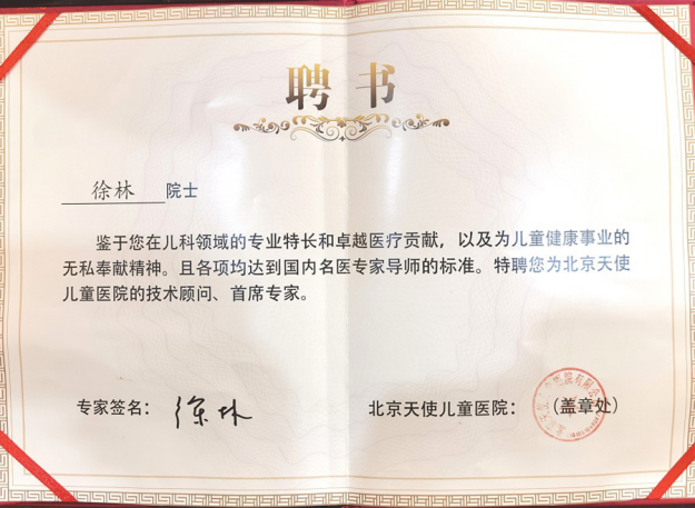 2023年9月24日,徐林教授正式签约成为北京天使儿童医院的技术顾问和首席专家,徐林教授的加入将为北京天使儿童医院带来更高的医疗技术、更前沿的医疗理念、更丰富的临床经验以及更精细的医疗服务。